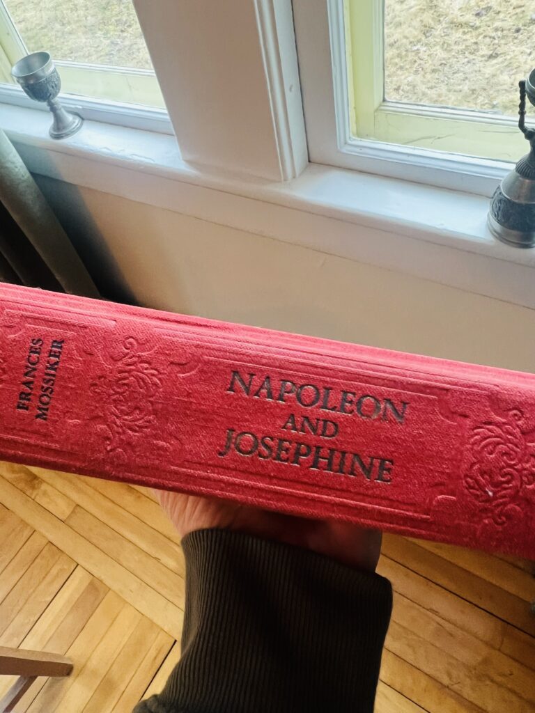 It wasn’t a conversation with a person at the garage sale that instilled a fire within me to imagine an adventure overseas I never knew to dream, it was a book; a red hardback by Frances Mossiker that was missing its decorative sleeve. But on the ruby red spine in gold lettering were two names: Napoleon and Josephine. I’d never been interested in French royals, but there was something about the physical beauty of this book that demanded I spend the dollar and take it home.